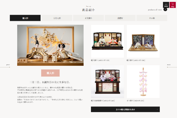 今回のサイト制作では、各節句・用途ごとの製品カテゴリを整理し、伝統と物語を語るコンテンツを充実させた構成にしました。