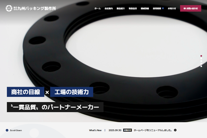 当社コメント福岡県大牟田市を拠点に、ゴム・スポンジ・ウレタンなどの軟質素材加工を手掛ける株式会社九州パッキング製作所様のウェブサイトを制作させていただきました。