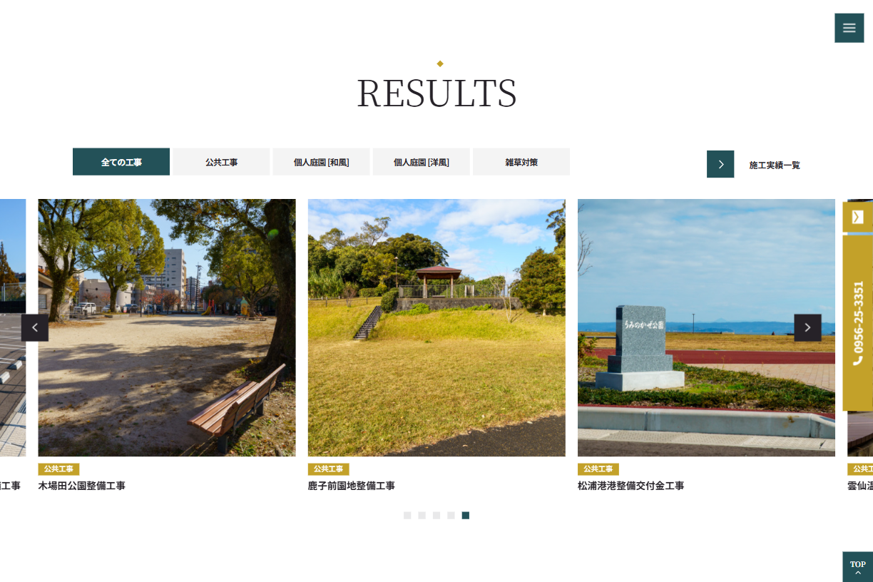 今回のサイト制作では、事業内容や施工実績、企業の取り組みを分かりやすく伝える情報設計を重視しました。土木・緑化それぞれの事業領域を整理し、訪問者が企業の対応範囲や強みを直感的に理解できる構成としています。